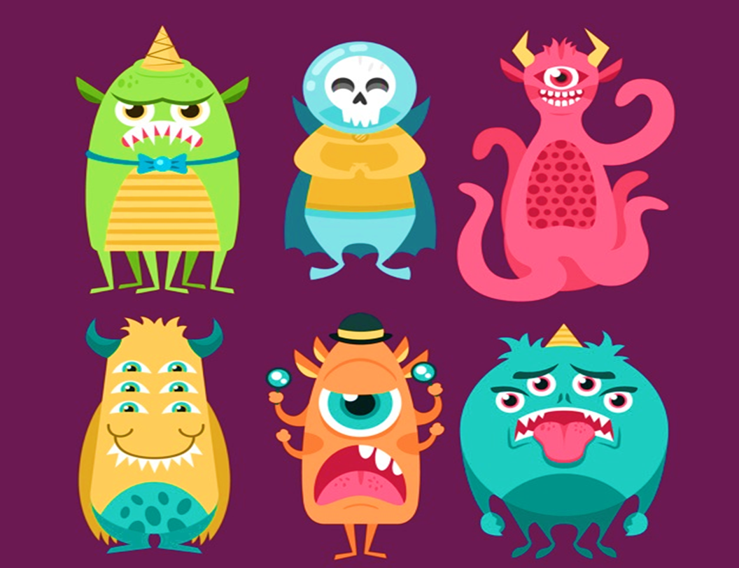 1.- Look and describe the monsters.