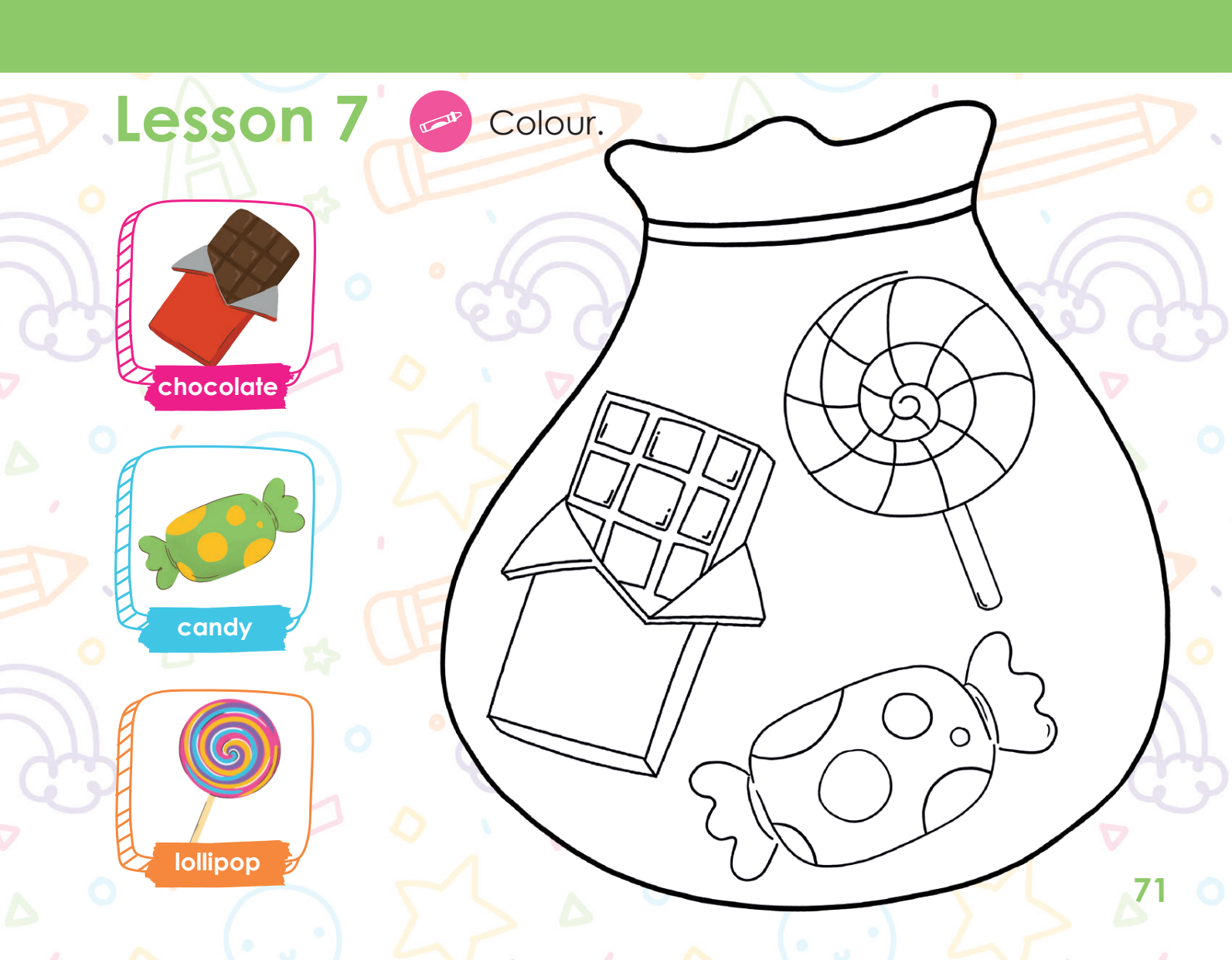 Lesson 7. unit 4. AK1 1. Look and learn! Download 2. Colour Download 3.- Let's play Download 4. Open your book! Download 5.- Look and learn Download